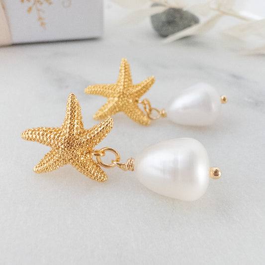 Seaside Charm Starfish & Pearl Drop Earrings