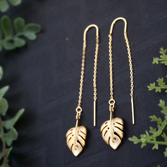 Gold Monstera Threader Earrings