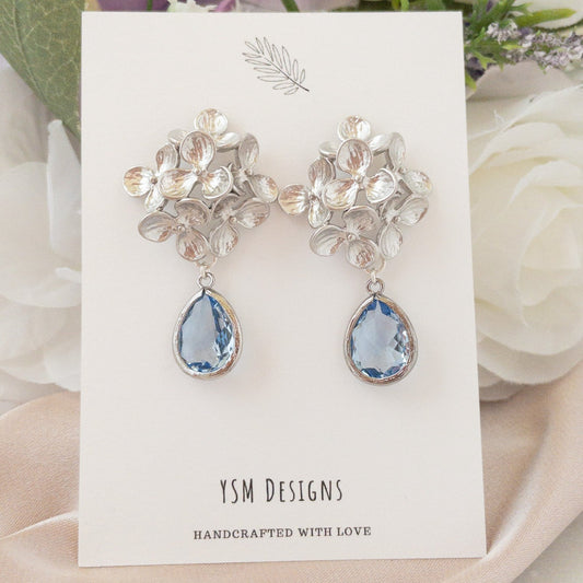 Hydrangea Flower Earrings with Crystal Stones