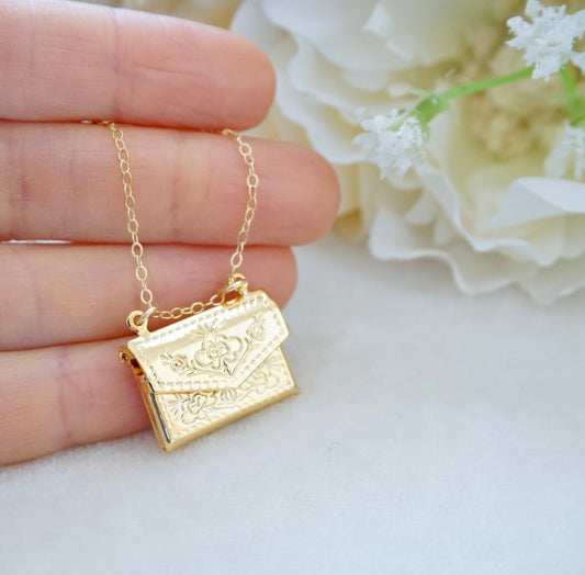 Sold outGold Envelope Locket Necklace