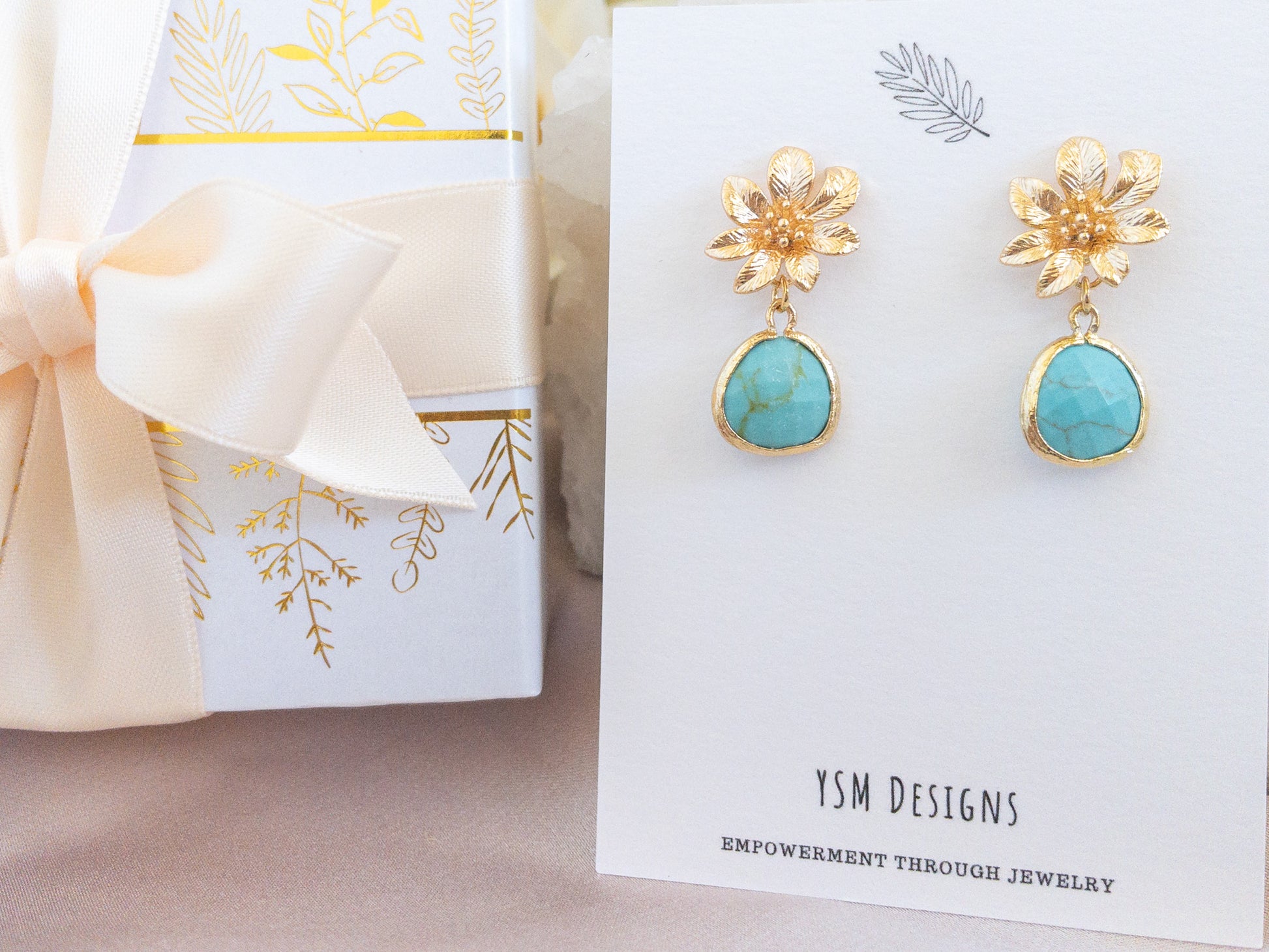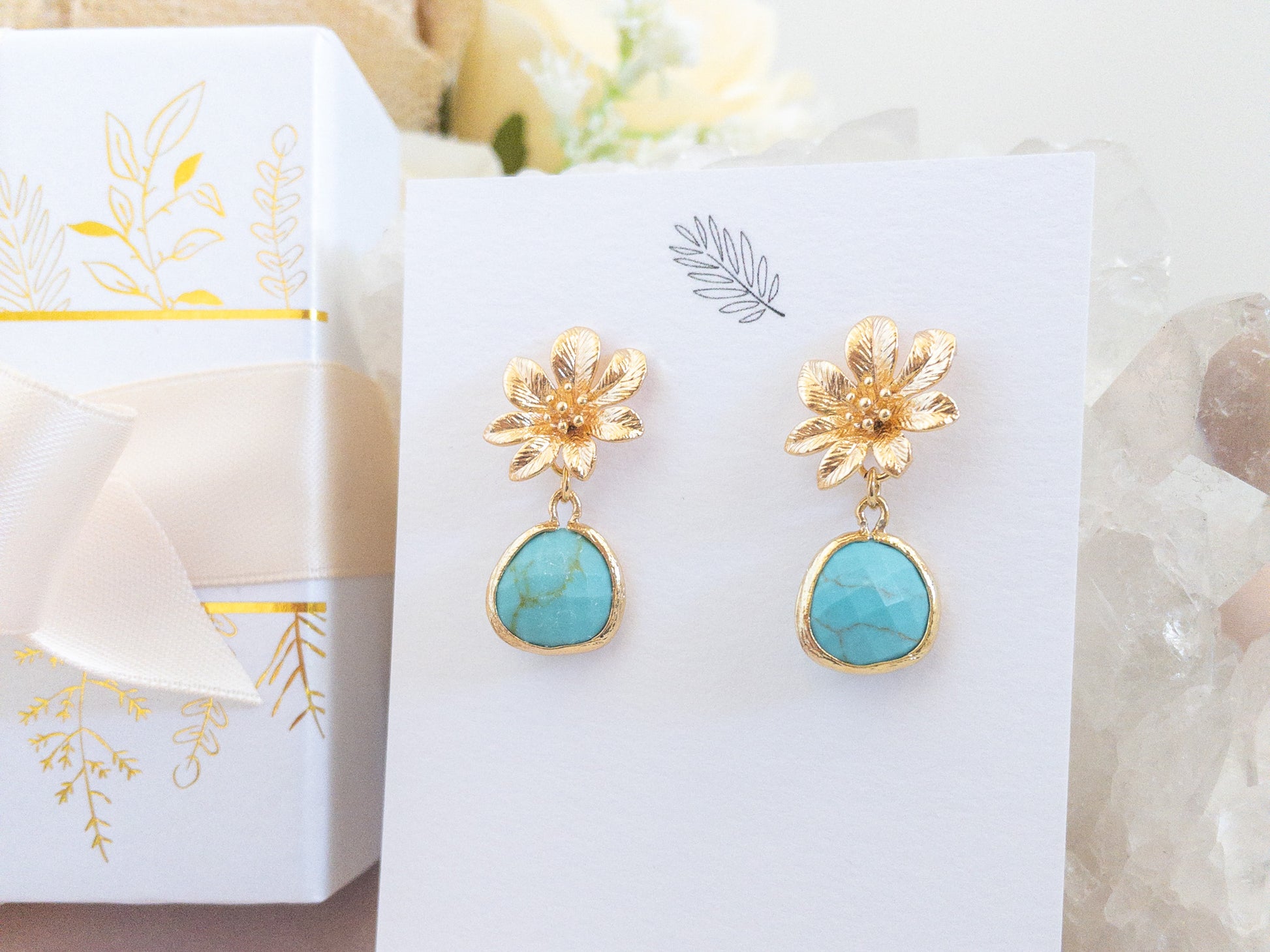 Whether you're attending a summer wedding, heading to a music festival, or just enjoying a day out with friends, these clematis flower post earrings with turquoise glass crystal stones are the perfect accessory for any summer occasion.