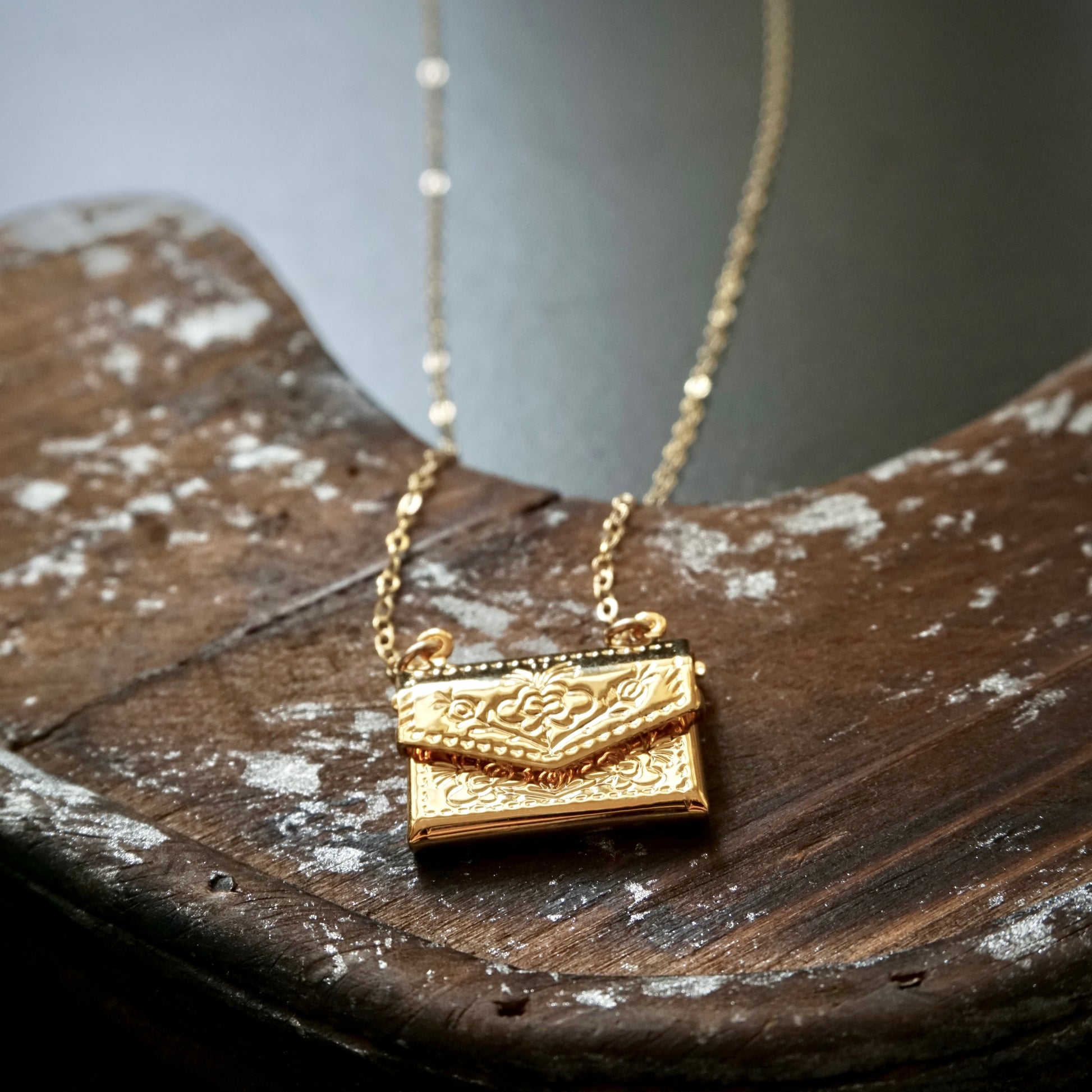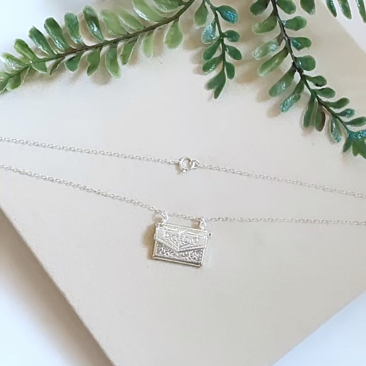 Express your love or convey a secret message with our charming envelope locket necklace. Exceptionally meaningful, this piece provides an opportunity to hold messages of loved ones close to your heart. Whether it's for a mother, sister, father, or best friend, this locket serves as a sweet way to encapsulate a life motto to cherish every day. Wear your sentiments proudly with this adorable envelope locket necklace.