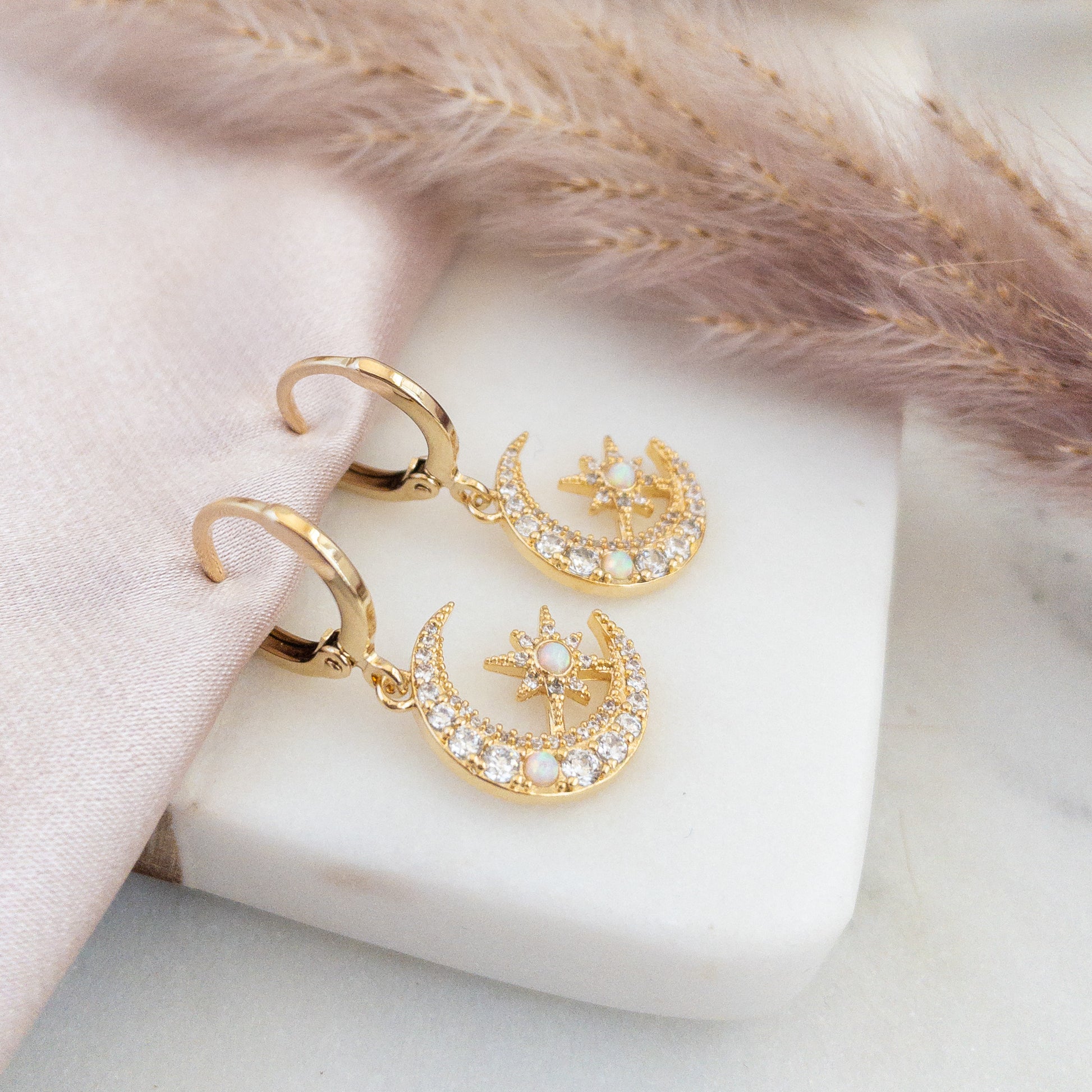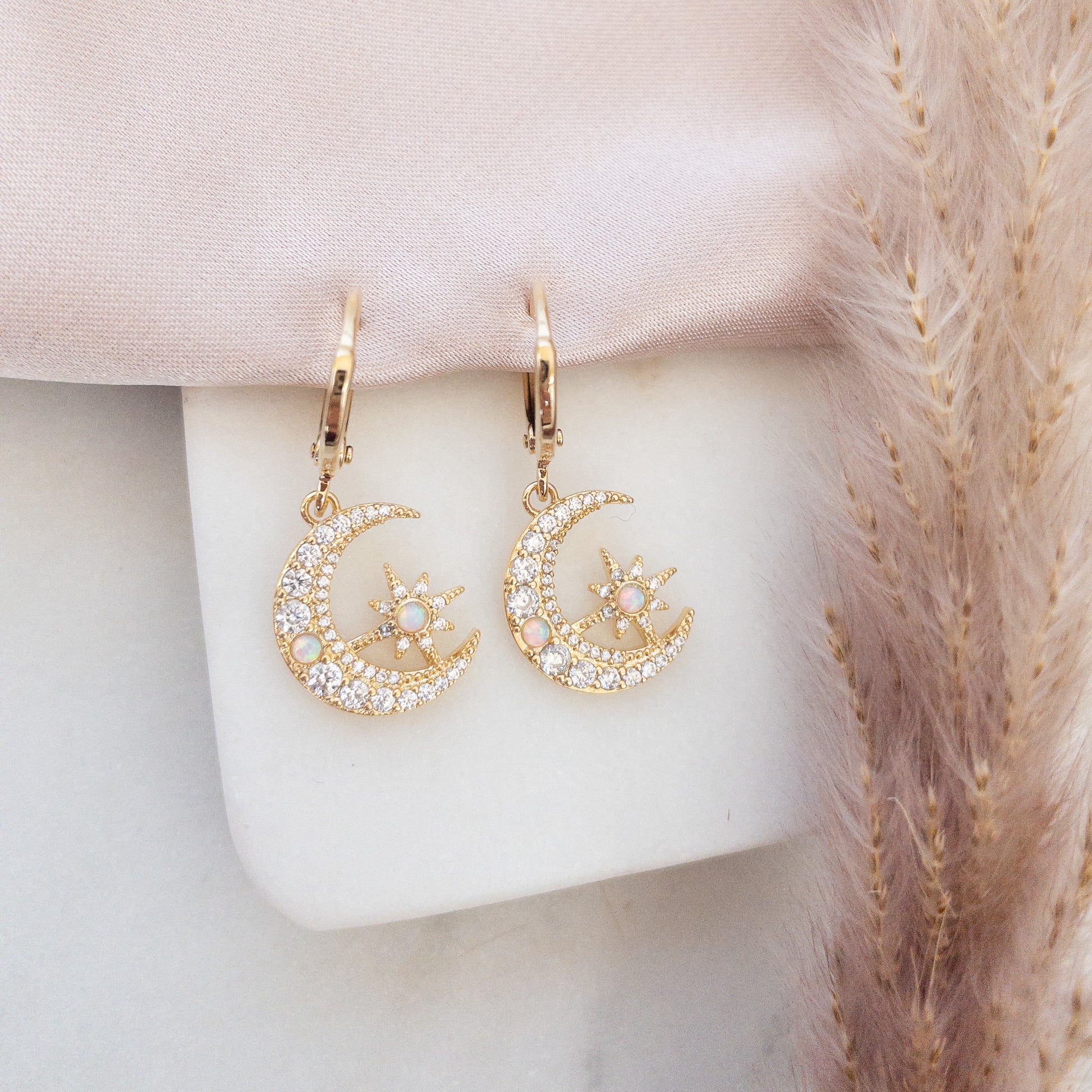 Materials : gold plated hoops, gold plated charms, cubic zirconia, lab opals