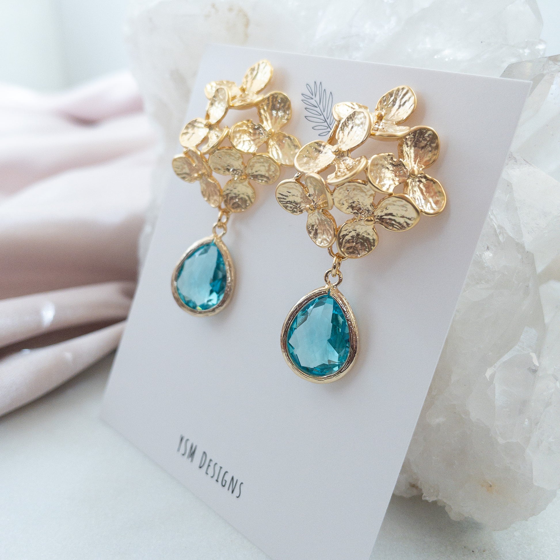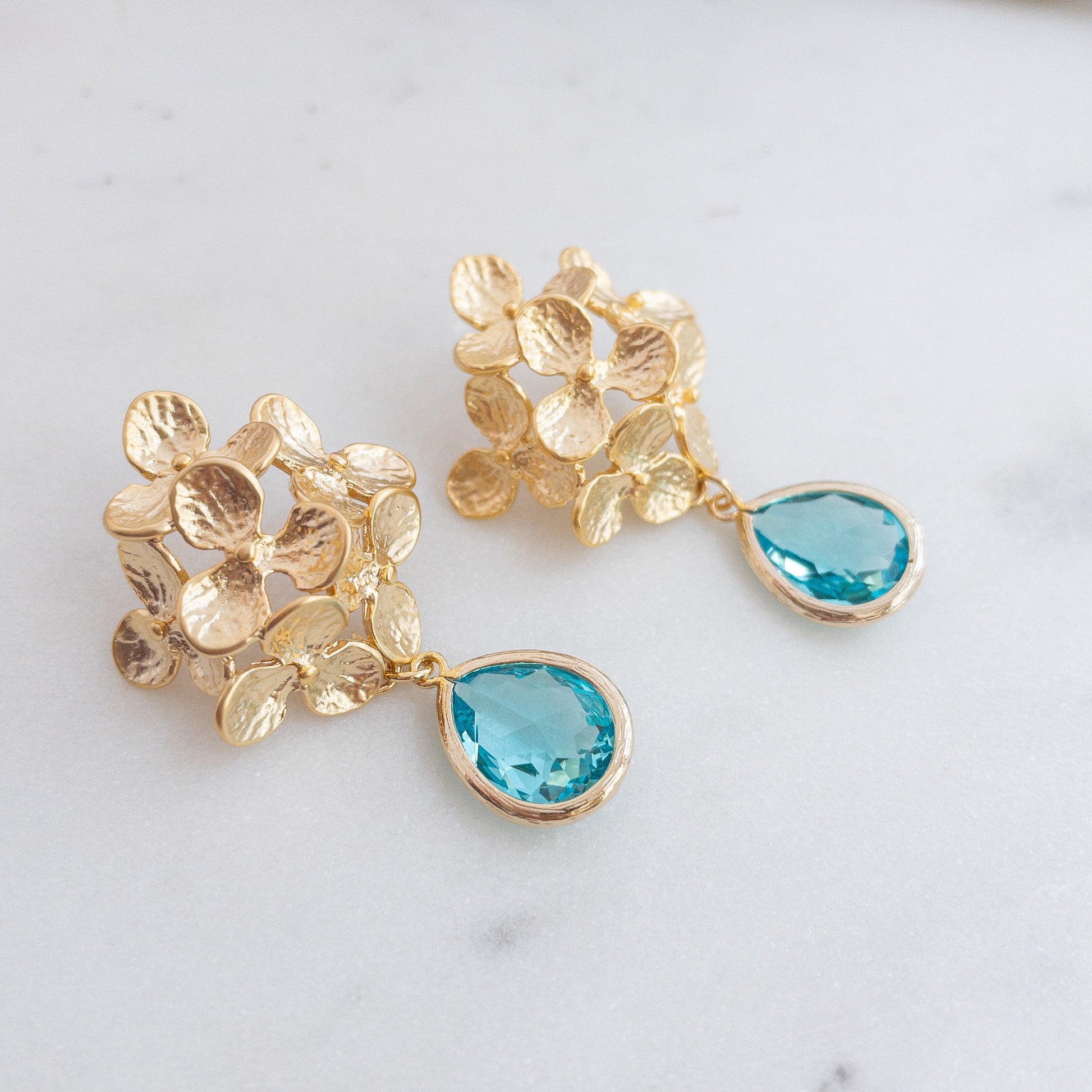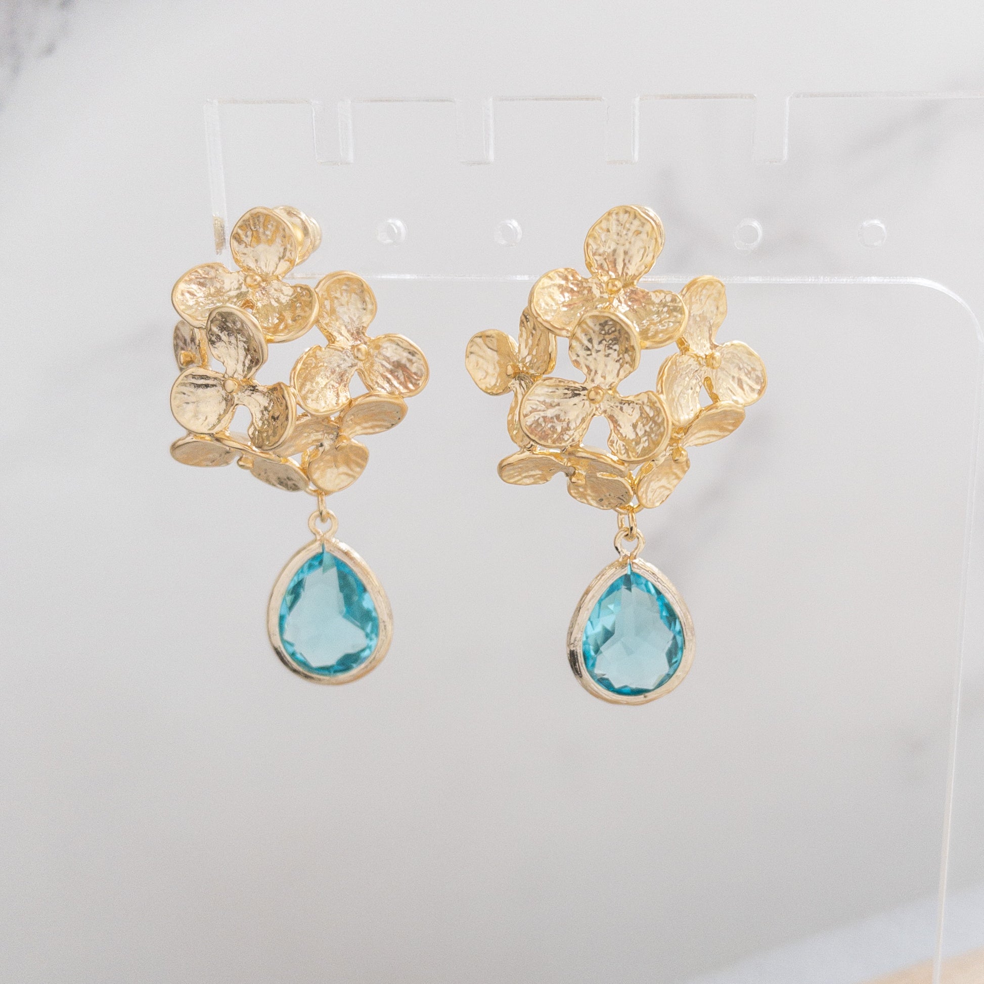Beautiful hydrangea post earrings with sparkly blue glass crystals.