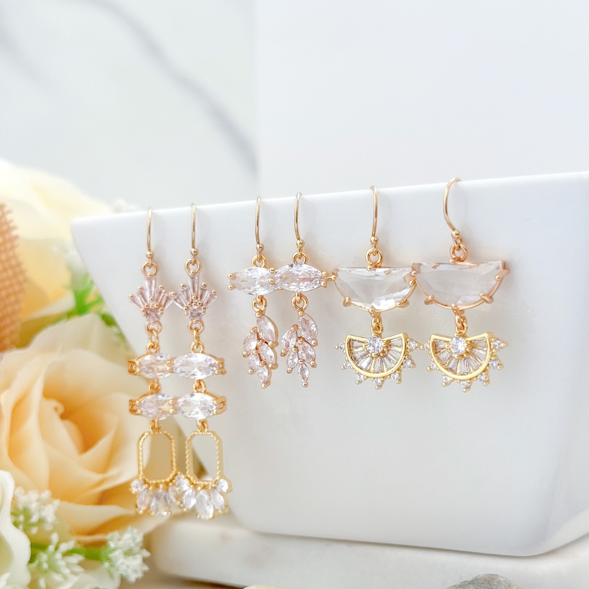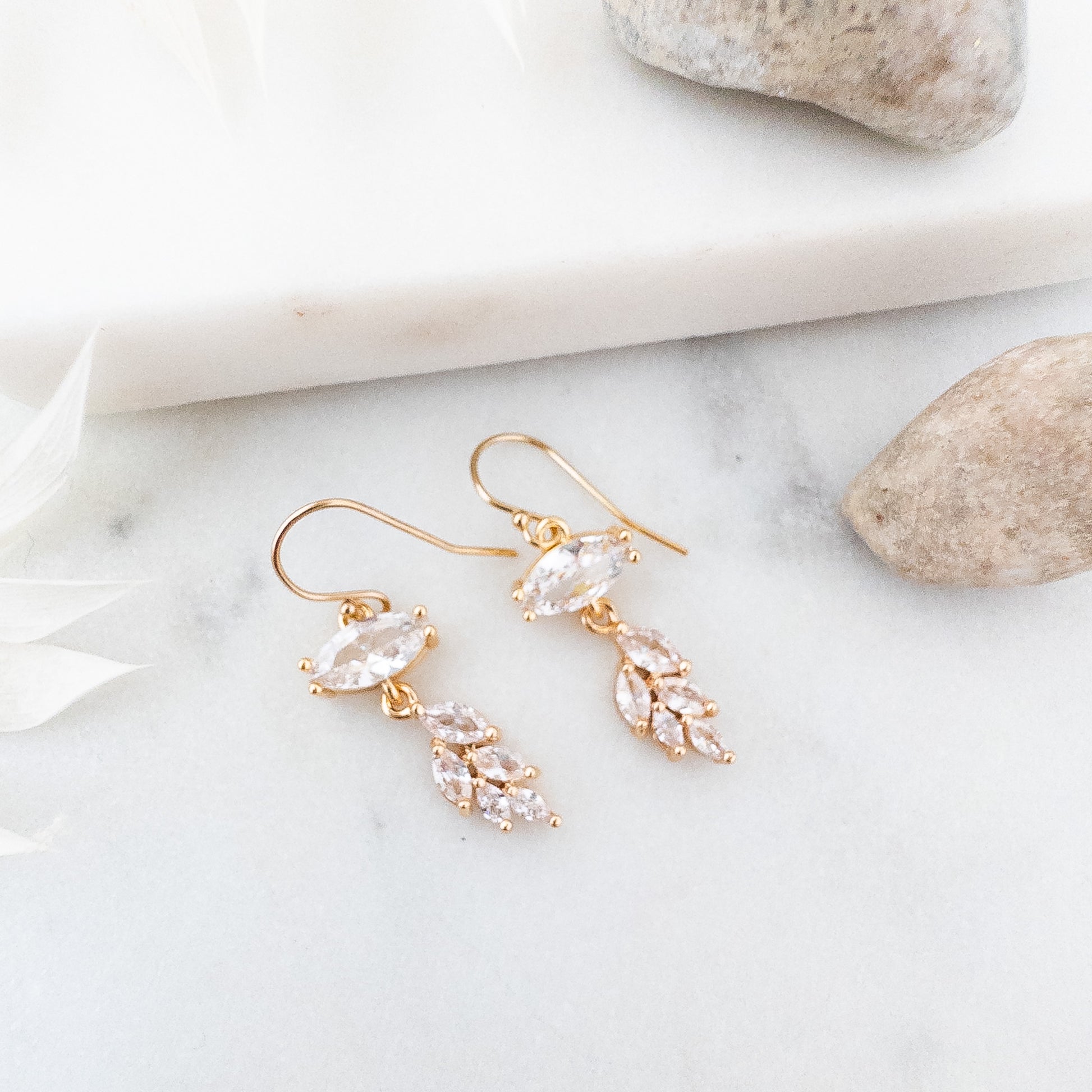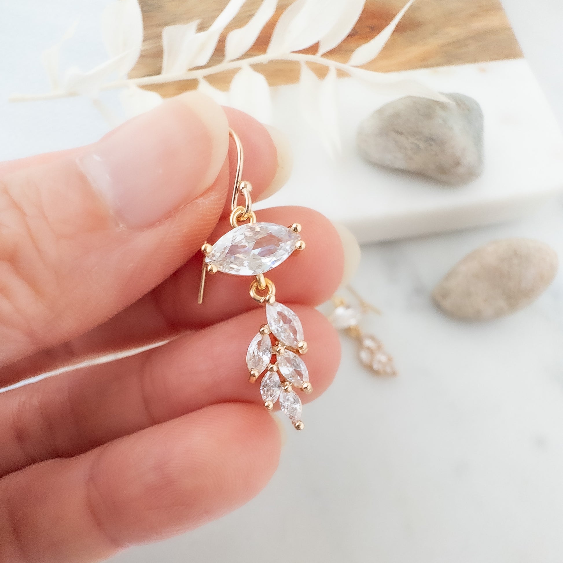 Looking for a little sparkle that’s not too much? These dainty gold earrings are just the thing. With a clear crystal and a cute little leaf dangle, they give off vintage Art Deco vibes in a smaller, more everyday-friendly size.