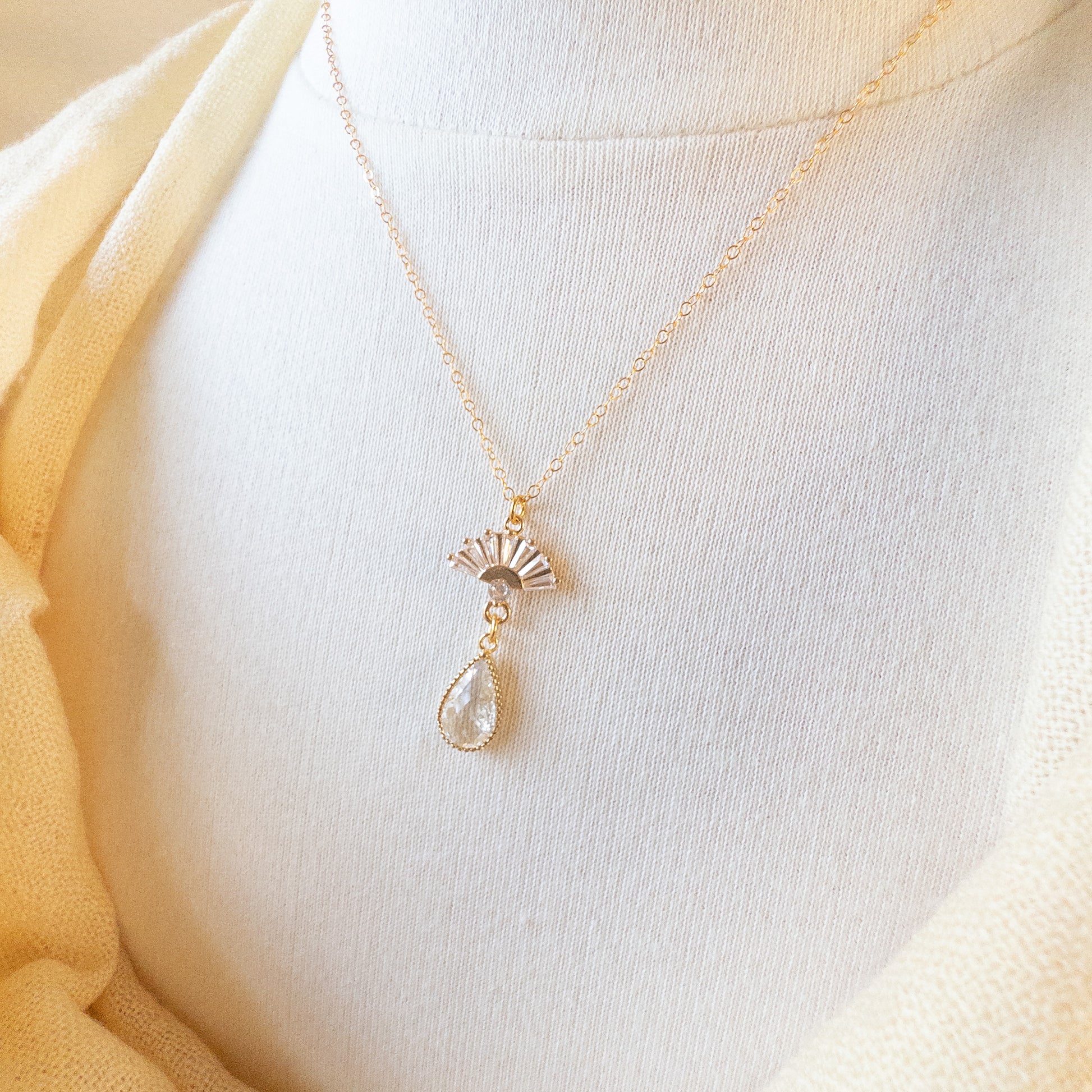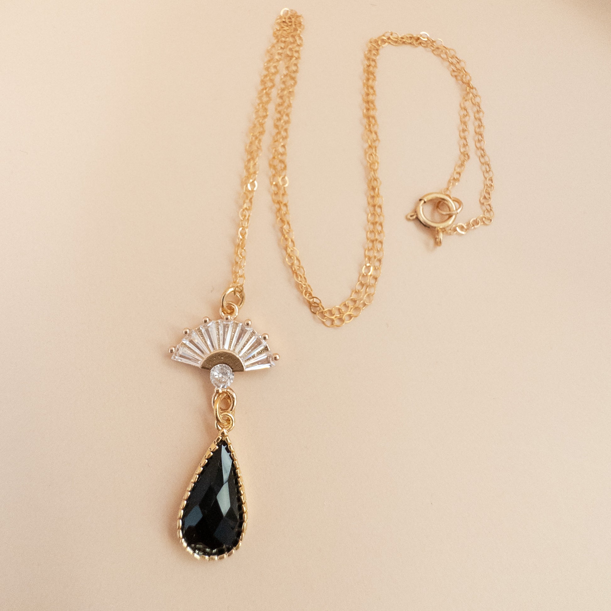 Vintage inspired dainty necklace with your choice of black/ clear crystal pendant.