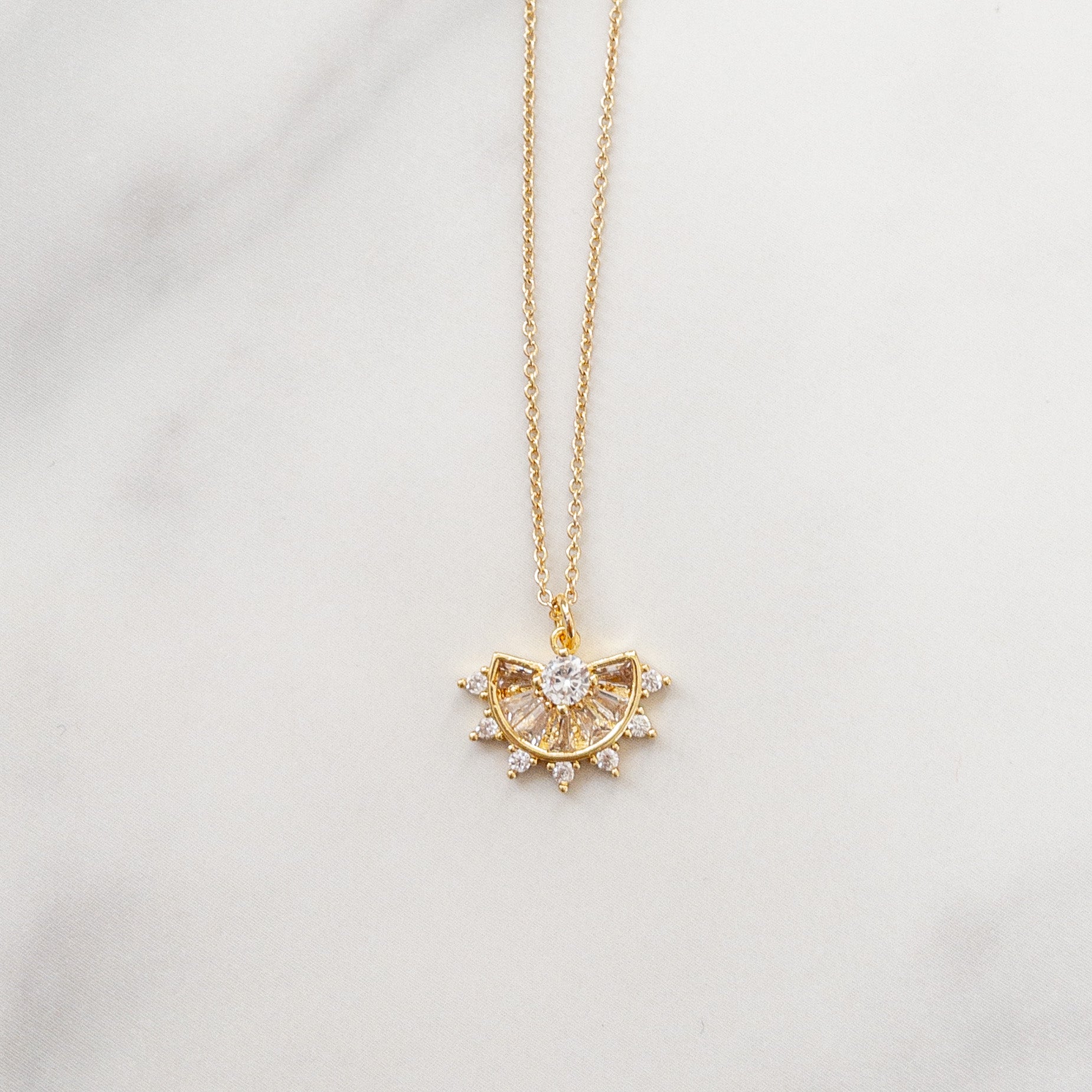 The Amelia necklace is a perfect balance between sparkle and simplicity. It complements your everyday style when you want a little touch of bling to your neckline.