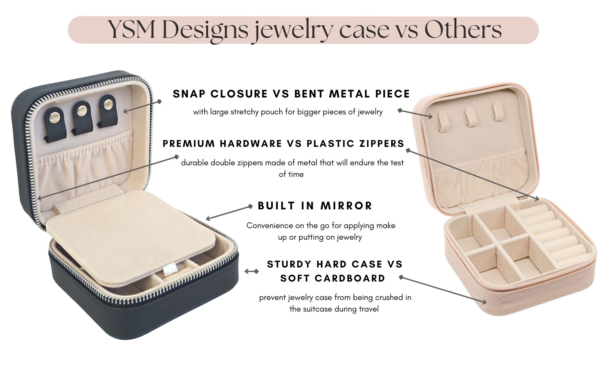 Discover the perfect blend of style, functionality, and durability with YSM Designs Jewelry Organizer Travel Box. Crafted to cater to the needs of the modern woman, this compact case is more than just a place to store your precious gems; it's a reflection of your discerning taste.