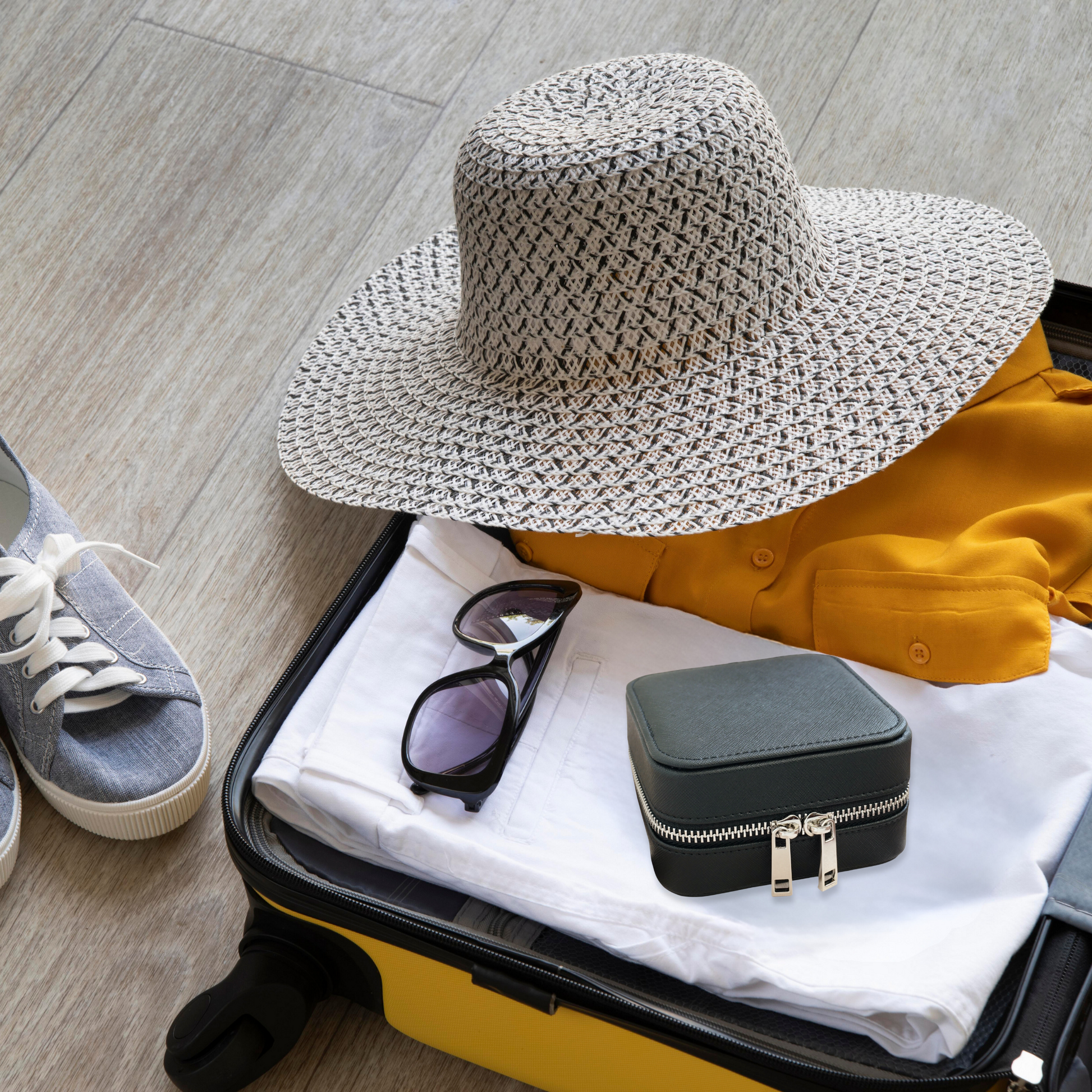 Measuring a convenient 4.5 inches by 4.5 inches, our travel box slips easily into your purse or carry-on luggage. It's lightweight and compact, ensuring you never have to compromise on your style, no matter where life takes you.