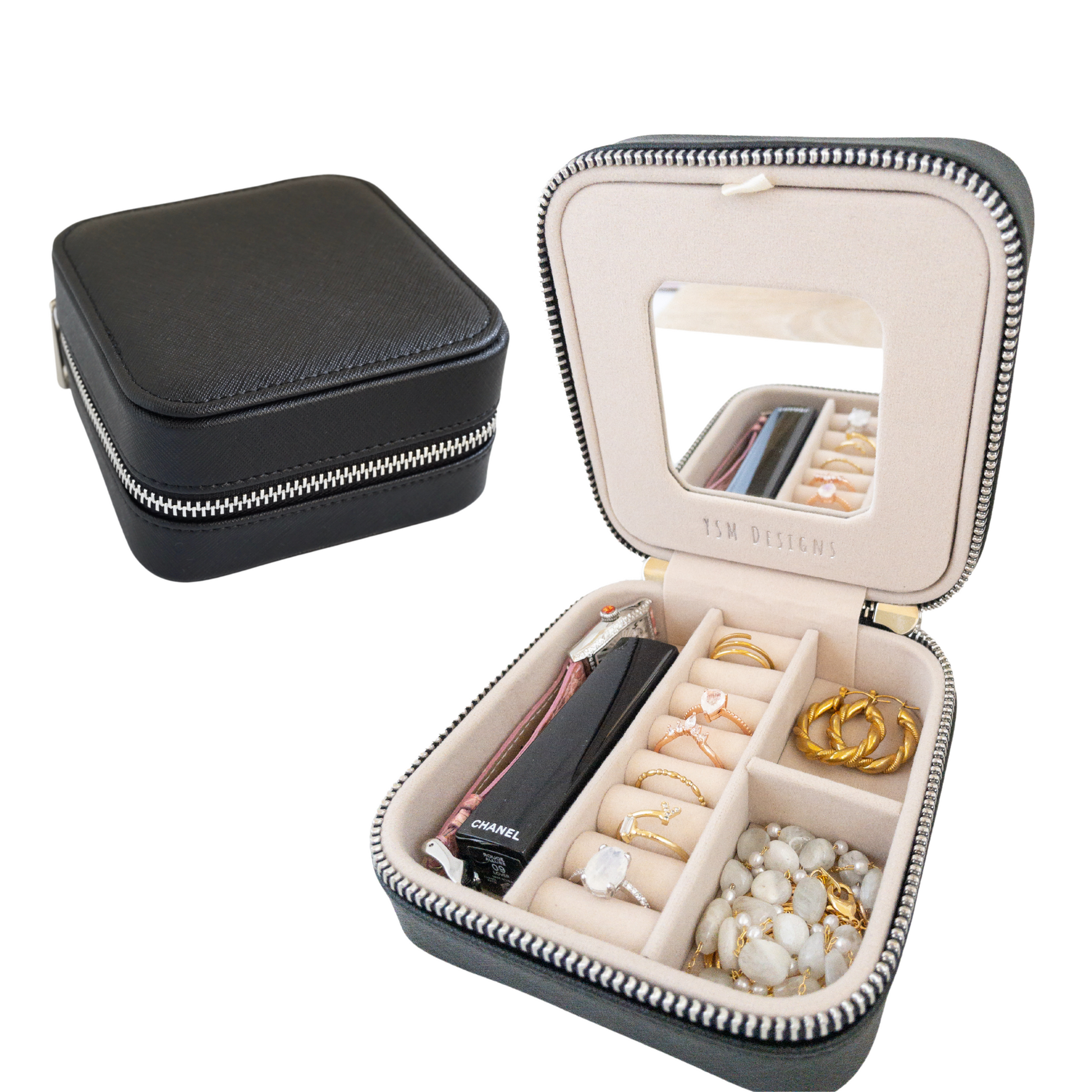 No need to carry an extra mirror; this travel box comes with a built-in mirror, making it effortlessly convenient for quick touch-ups, adjusting your jewelry, or adding that final dash of lipstick before your next important meeting or dinner date.