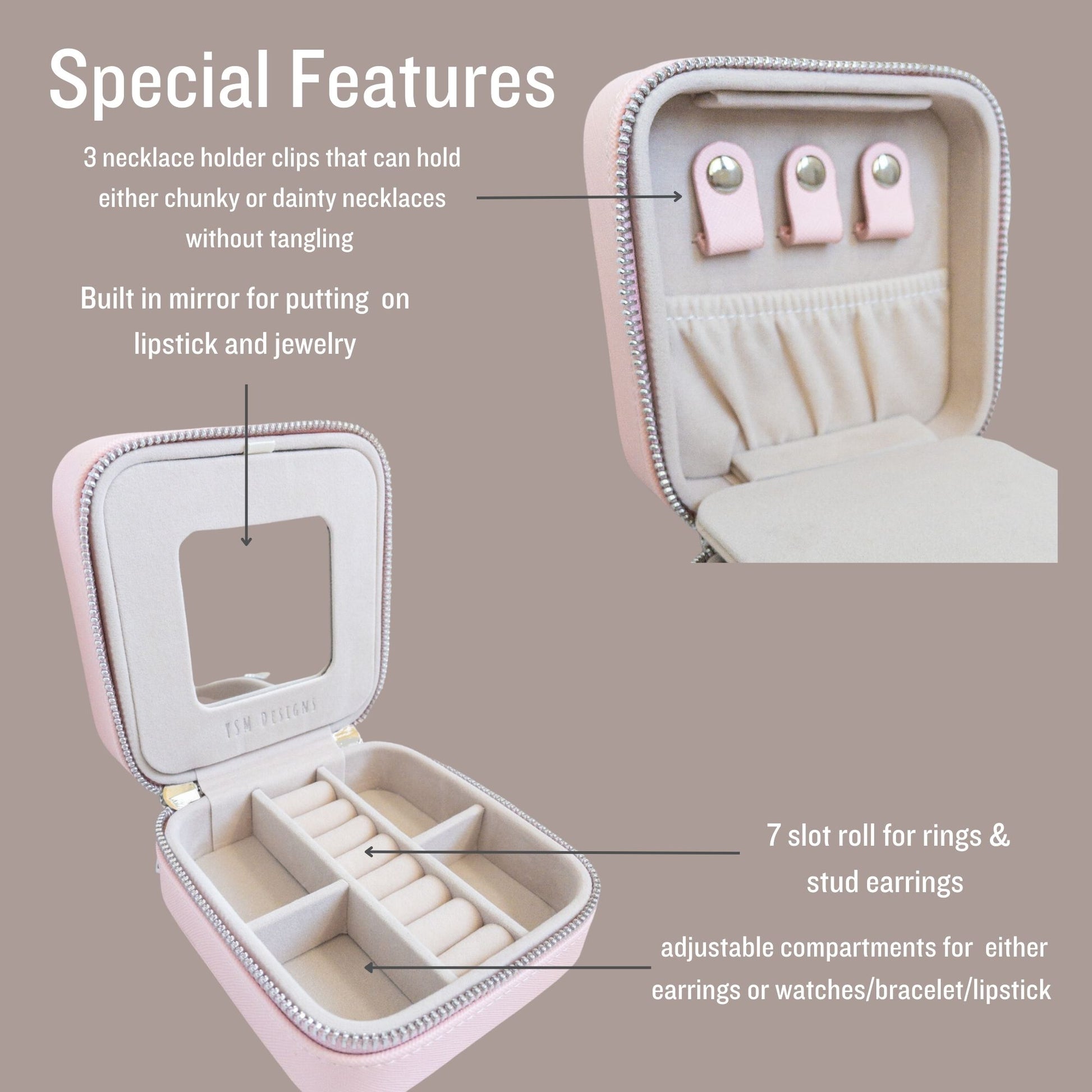 No need to carry an extra mirror; this travel box comes with a built-in mirror, making it effortlessly convenient for quick touch-ups, adjusting your jewelry, or adding that final dash of lipstick before your next important meeting or dinner date.